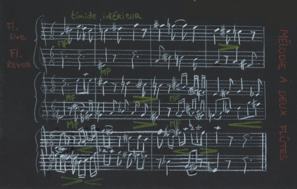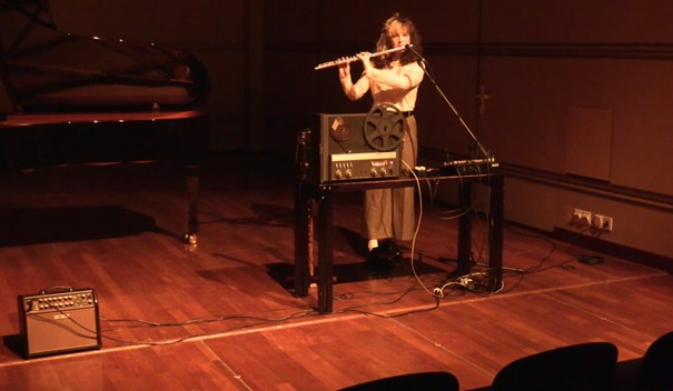 Pièce pour magnétophone, flûtes et pédale d'effet Performance sonore : 10 ’ 50 "